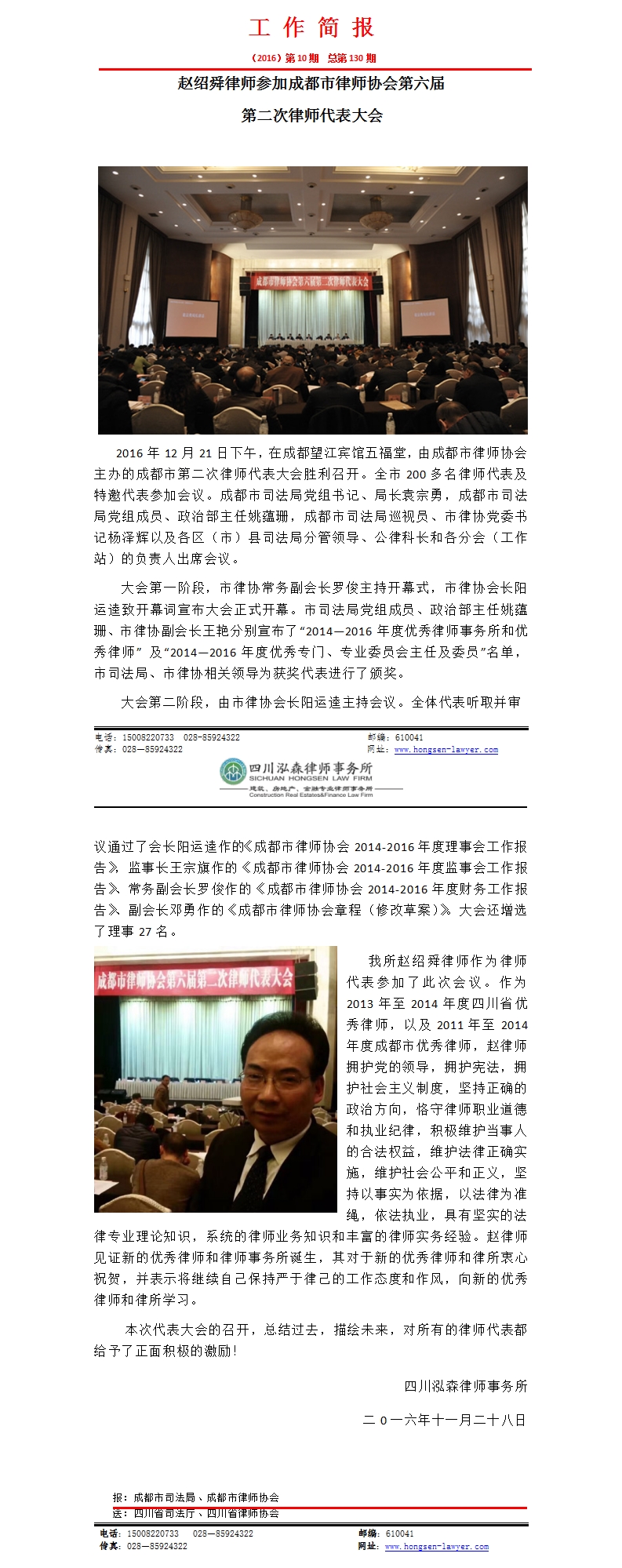 赵绍舜律师参加成都市律师协会第六届第二次律师代表大会