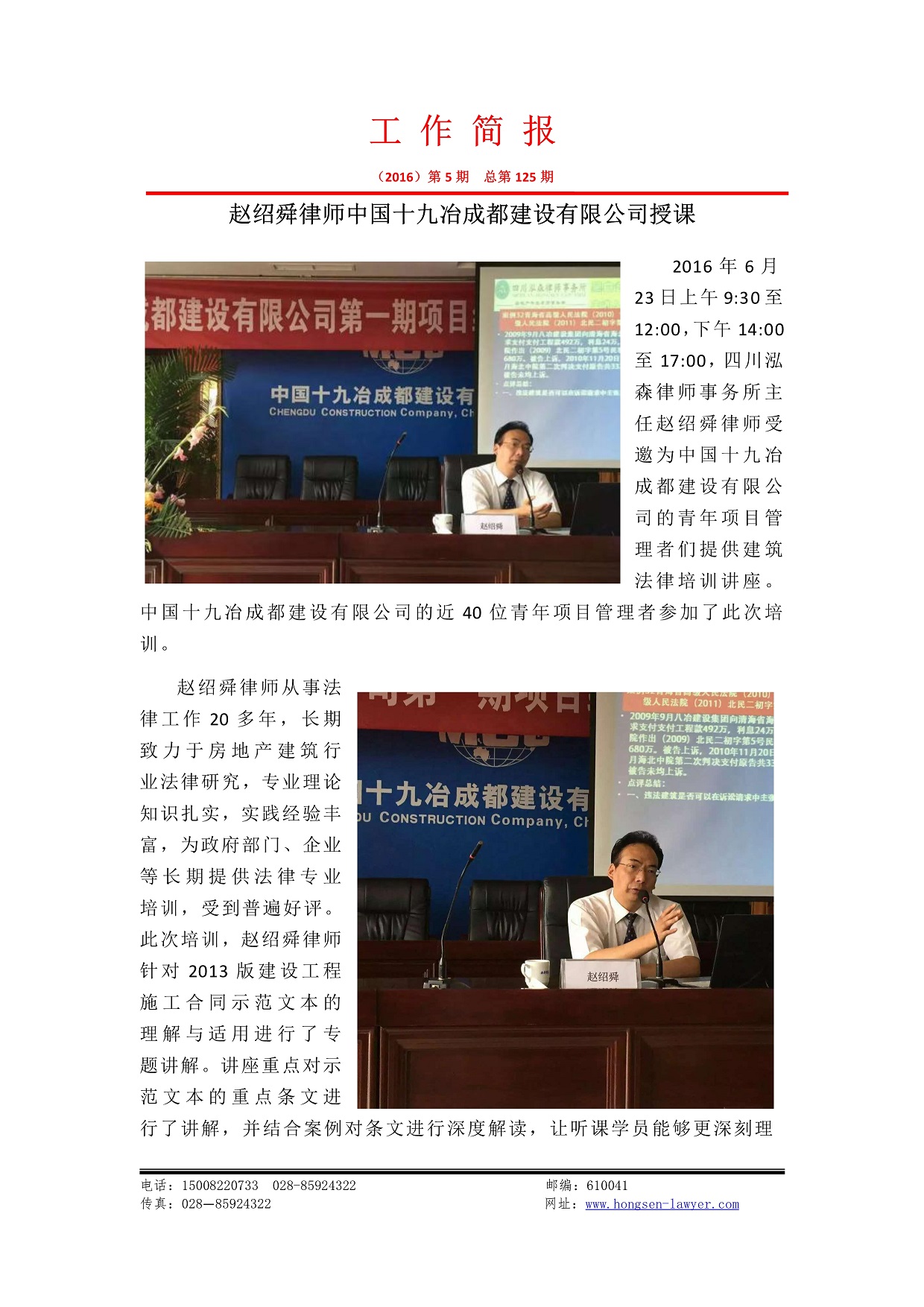 赵绍舜律师为中国十九冶成都建设有限公司授课