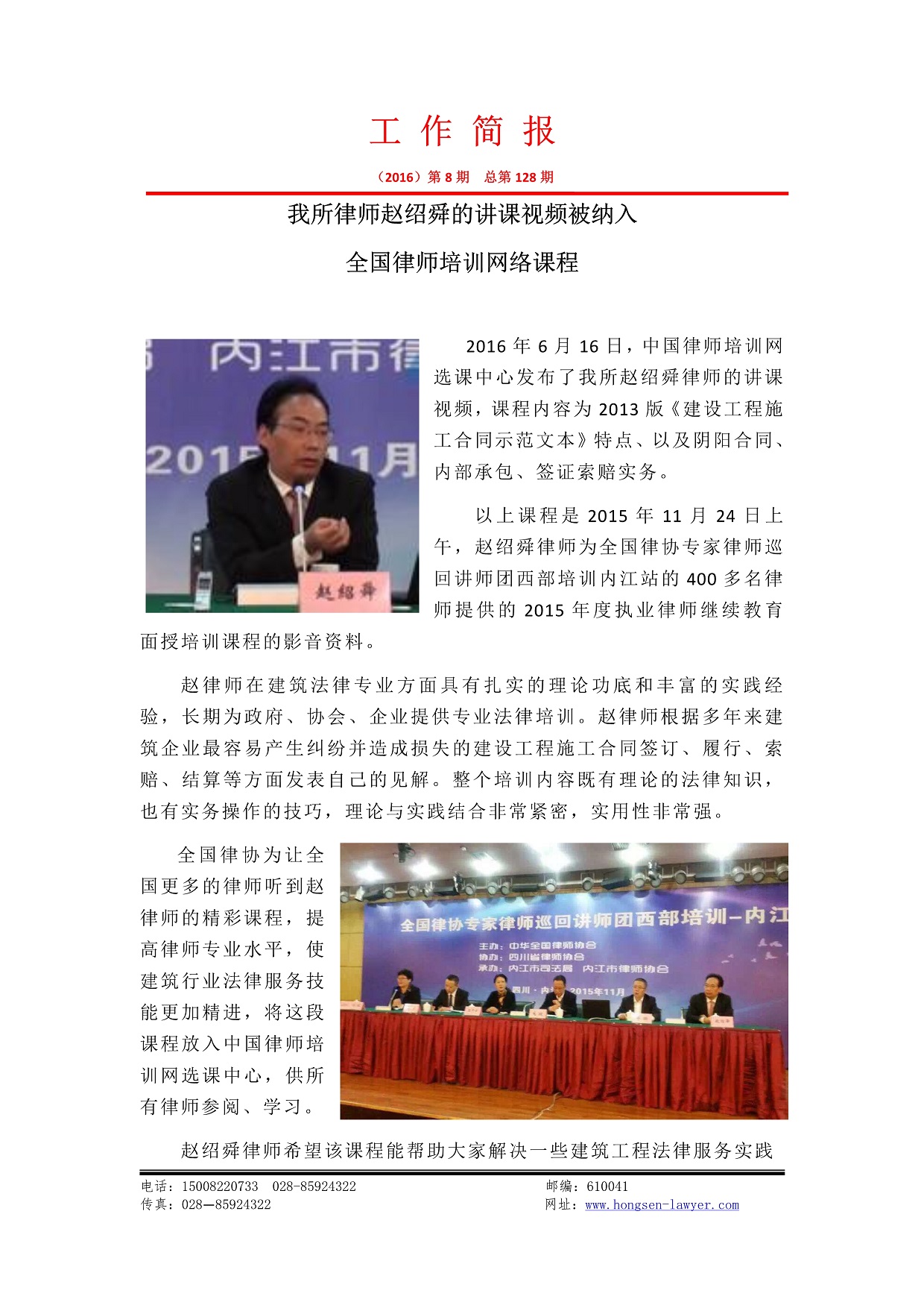 我所赵绍舜律师的讲课视频被纳入 全国律师培训网络课程