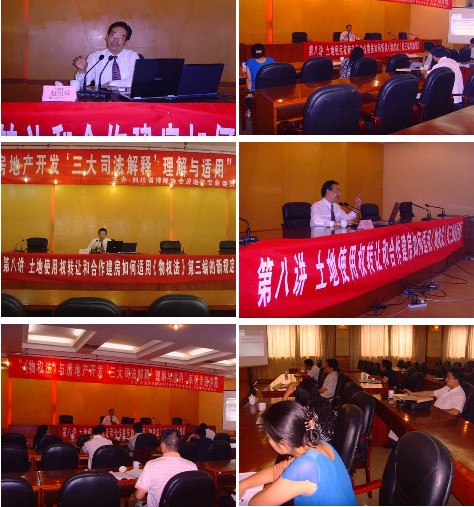 本次系列专题讲座由我所资深律师赵绍舜担任主讲人,第五讲至第八讲内容分别为:商品房买卖合同及补充协议如何适用《物权法》的新规定;在商品房交付和产权登记中如何适用《物权法》的新规定;建设工程价款的计算、造价鉴定和施工合同在《物权法》第四编中的适用;土地使用权转让和合作建房如何适用《物权法》第三编的新规定。赵律师讲课过程中结合物权法理论、《物权法》条文及房地产开发“三大司法解释”,对大量案例进行了深入浅出的分析,使听课人员及时学习、理解、掌握了《物权法》及“三大司法解释”。